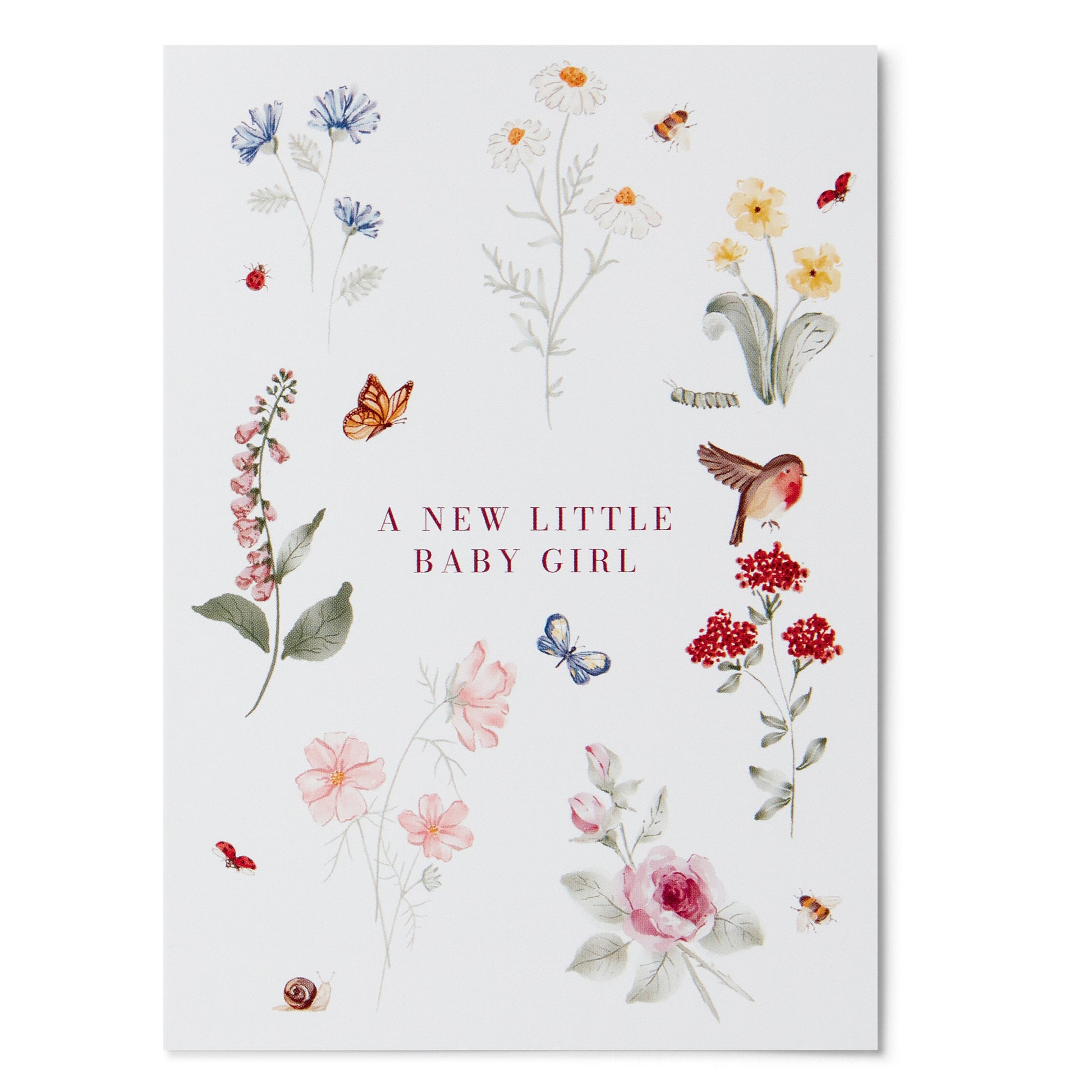 Welcome a precious new arrival with the charm and whimsy of an English garden. This beautifully illustrated baby girl greeting card features the enchanting Eleanor Charles English Garden print — a delicate, hand-painted design bursting with life and joy.