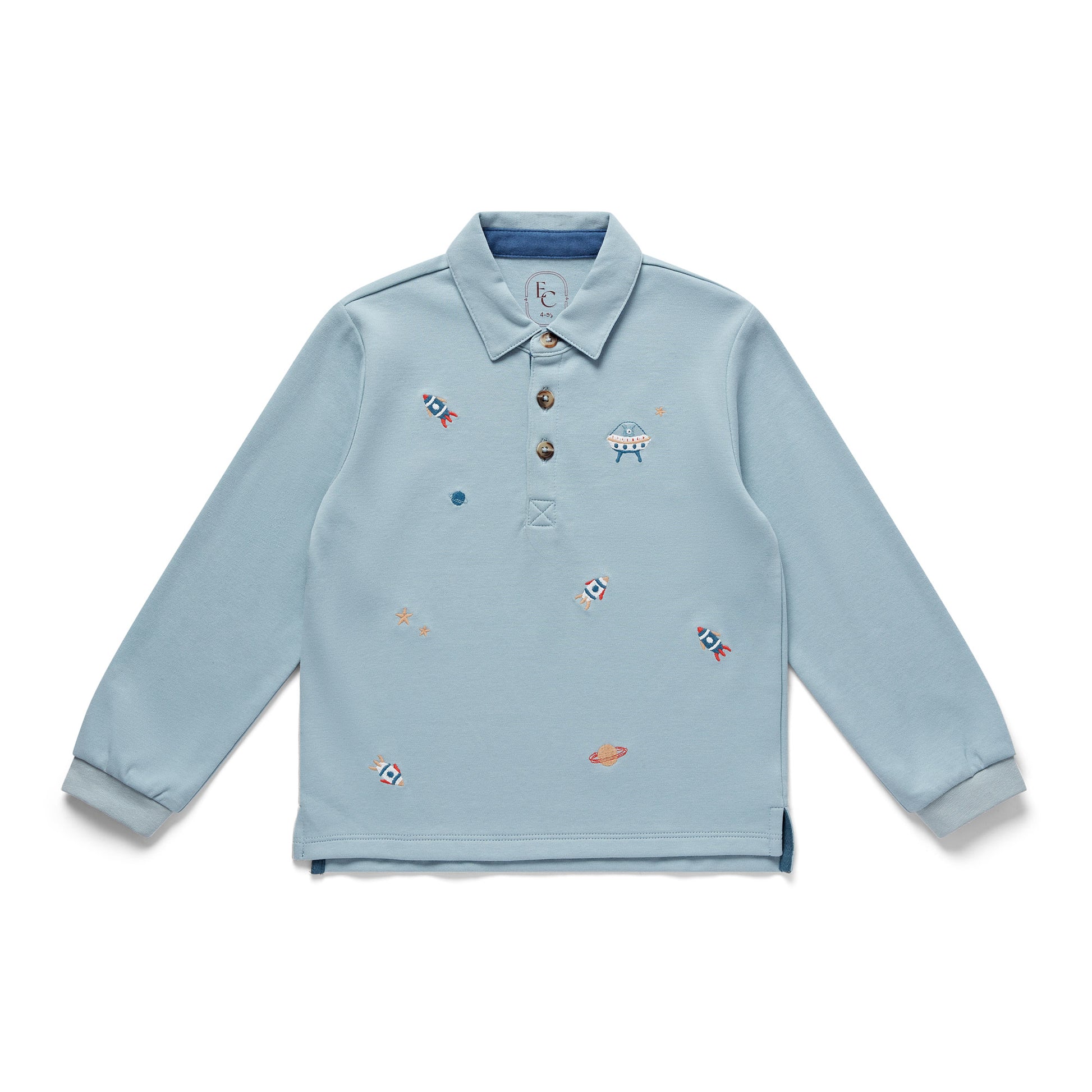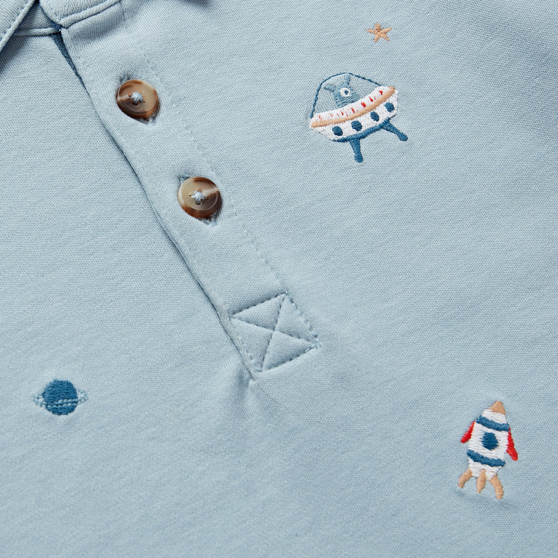 The classic polo silhouette is brought to life with charming embroidered rockets, spaceships, planets, friendly aliens and astronauts – making everyday adventures feel out of this world.