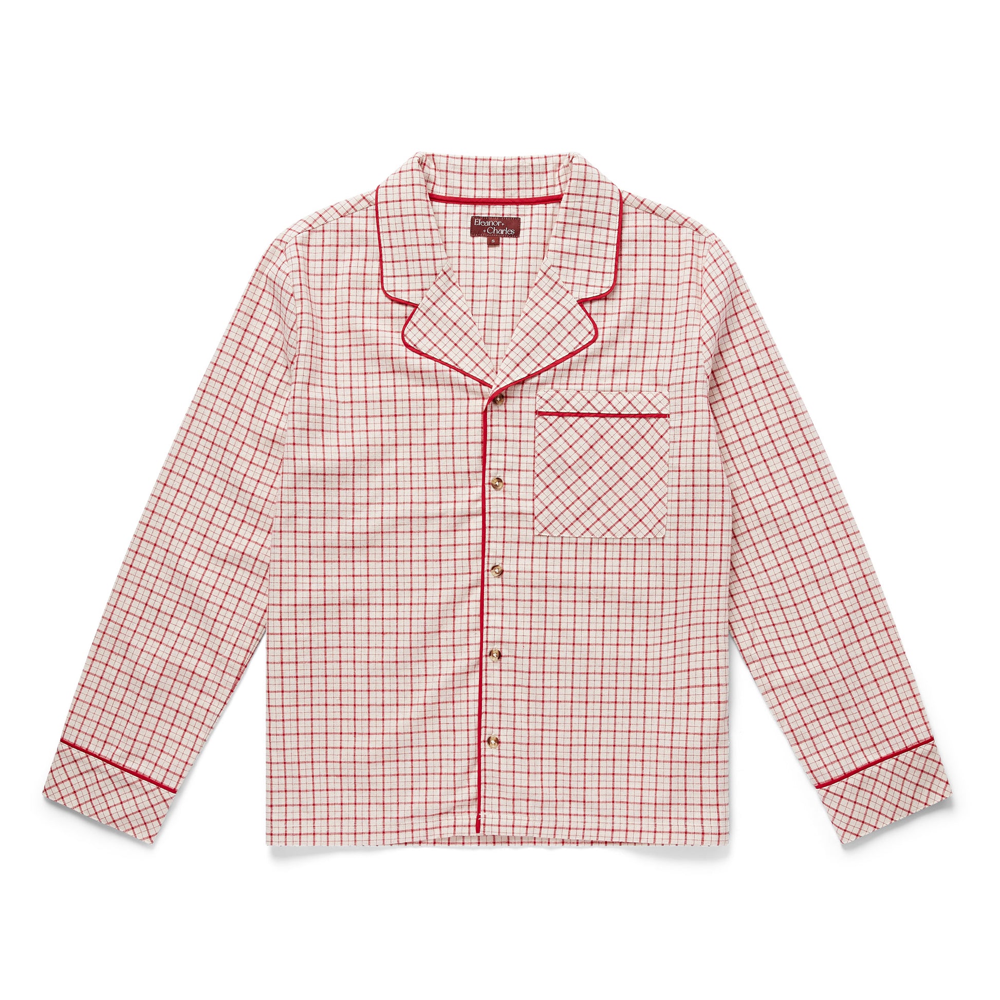 Sleep in timeless style with our Ladies' Classic Checkered Pyjama Set, crafted from soft, breathable brushed cotton in a charming red and white check pattern. This elegant two-piece set includes a long-sleeve button-up top with traditional red piping and a chest pocket for a touch of practicality and style.