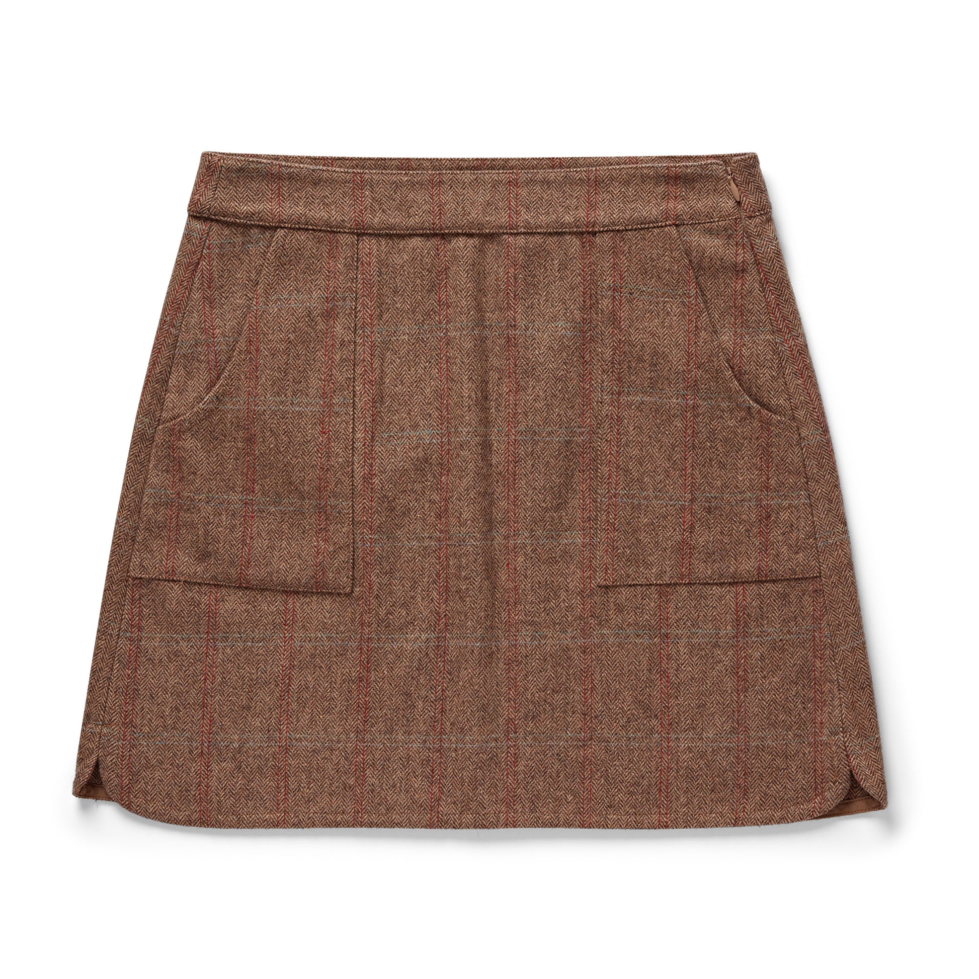 Elevate your wardrobe with this timeless tweed skirt, crafted from a soft, durable wool-blend fabric featuring a classic herringbone and plaid pattern.