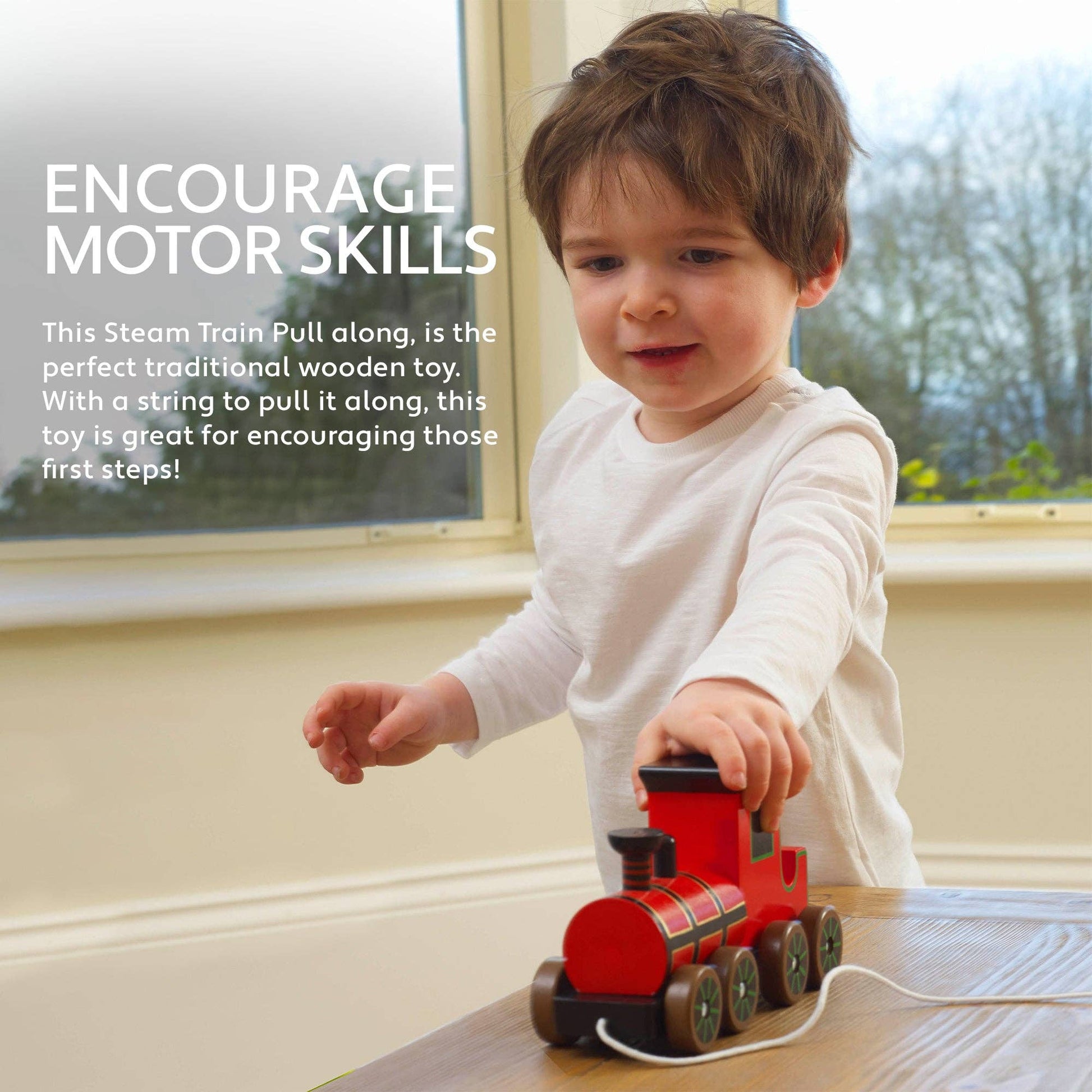 From our Vintage Collection, this toy Steam Train pull along is a beautiful traditional wooden toy. Painted in red, with beautifully painted detail to replicate a traditional victorian steam train.