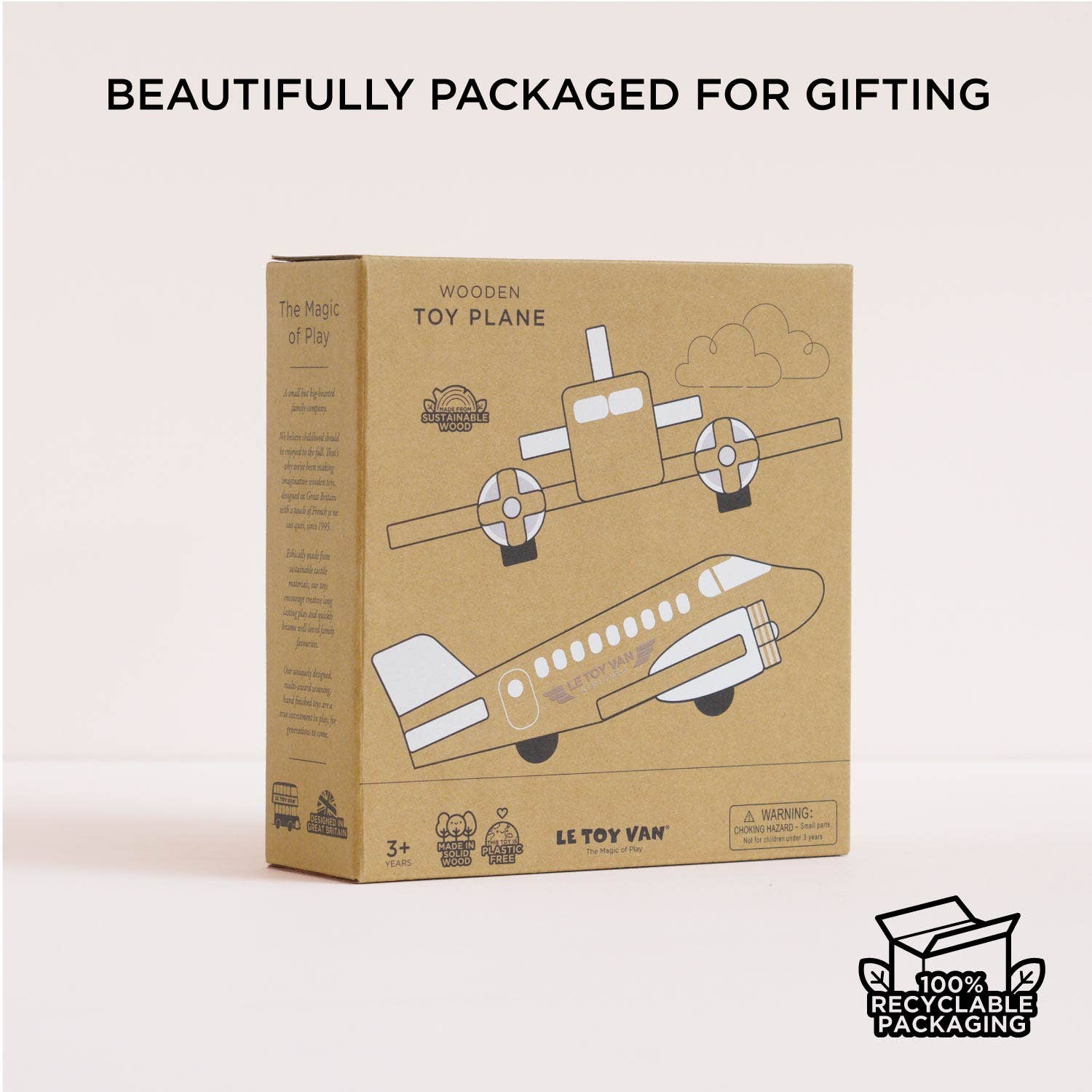It has spinning propellers and is crafted from FSC®-certified wood, which is exposed to show its natural grain and beauty. Embellished with engraved details and white accents, embark on a flight of aesthetic delight.